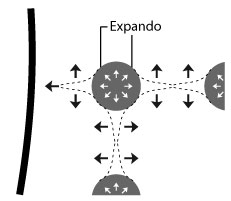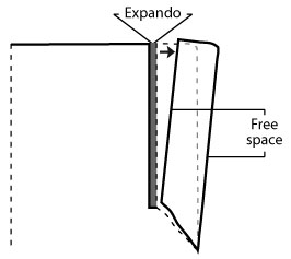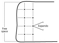The hole pattern design must allow the material to move to free space when Expando expands as shown in the diagrams below. Failure to provide free space will result in unpredictable material movement. We recommend that you plan your work so you are always working away from a free space (this gives the broken piece of material somewhere to move to).